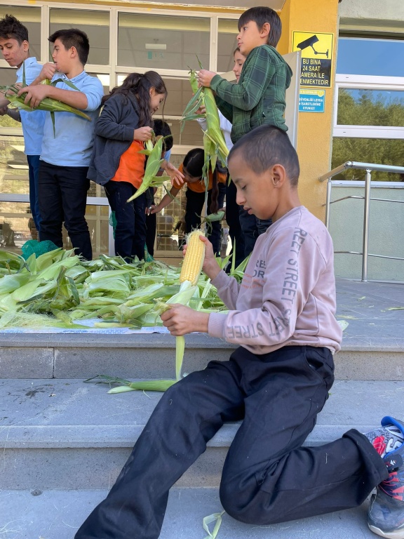 Etkinlik boyunca öğrenciler hem eğlendi hem de üretmenin ve paylaşmanın mutluluğunu yaşadı. Okul bahçesinde kurulan kazanın etrafında toplanan öğrenciler, arkadaşlarıyla birlikte mısırlarını yerken keyifli sohbetler etti.